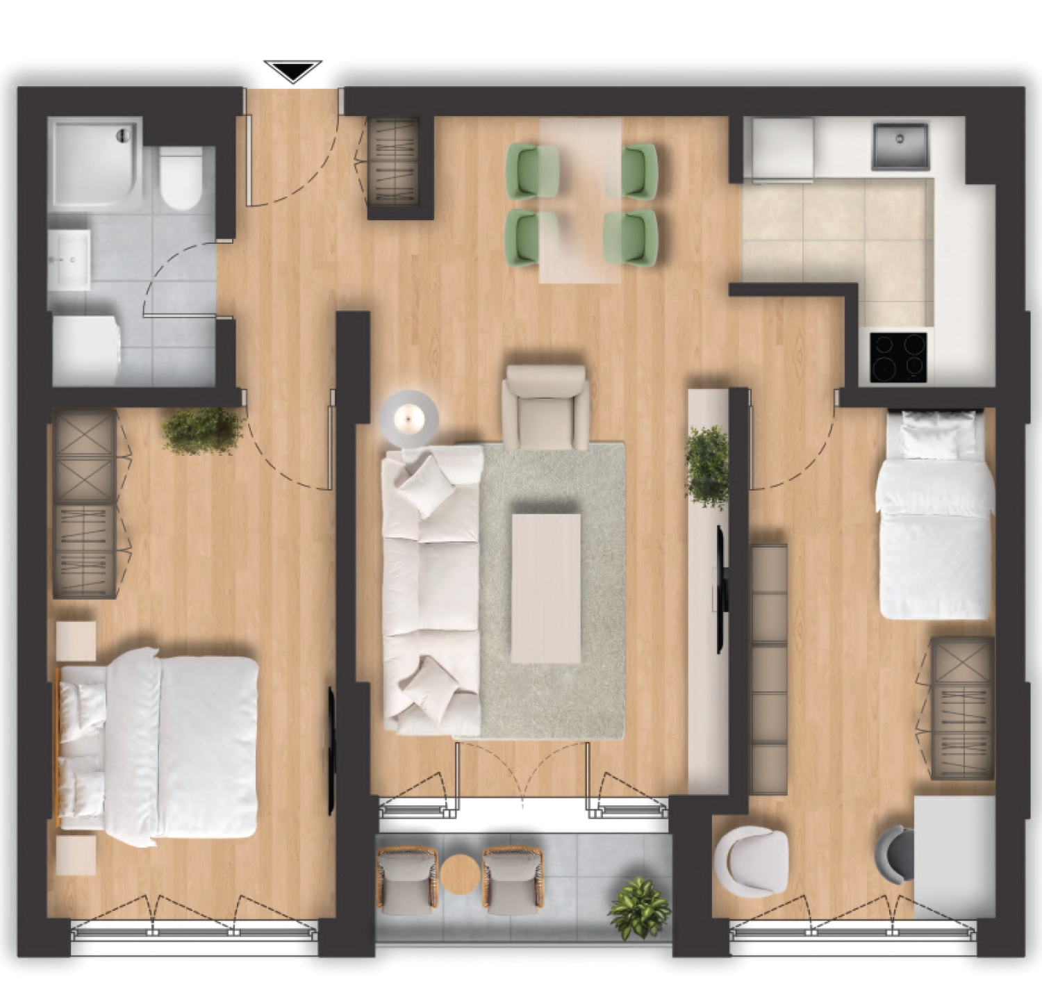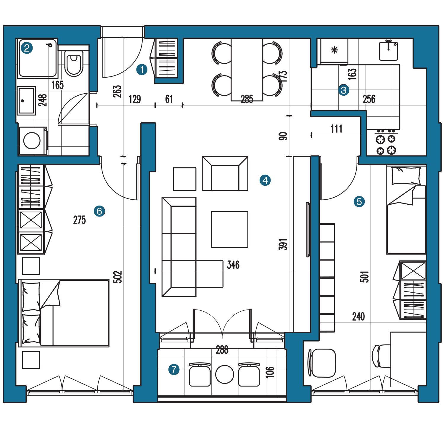 76 Two bedroom apartment / 65.54m2 VIII Floor / Building A1
